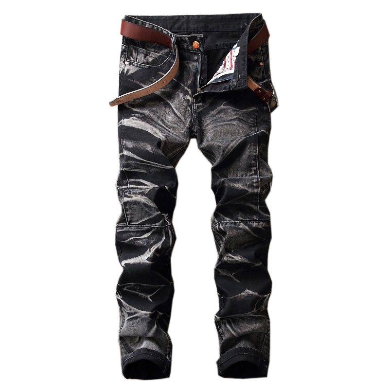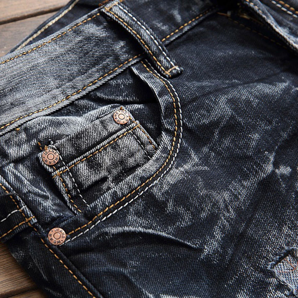 กางเกงยีนส์ลำลองผู้ชายขายส่ง แฟชั่นย้อนยุคฤดูร้อน/ฤดูใบไม้ผลิ ระบายอากาศได้ดี ทรงตรง ขาตรง ผ้าเดนิมทอลายพิมพ์ ไซส์ใหญ่