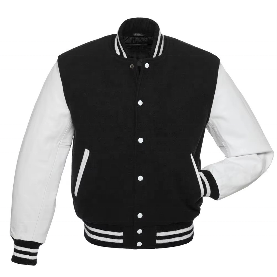 แจ็คเก็ตวาร์ซิตี้ผู้ชายขายส่ง ตัวเสื้อทำจากผ้าขนสัตว์ แขนเสื้อทำจากหนัง คุณภาพสูง แจ็คเก็ตบอมเบอร์แบบ Letterman สำหรับฤดูหนาว