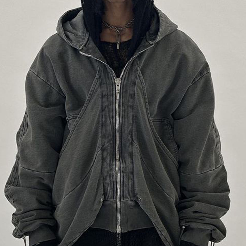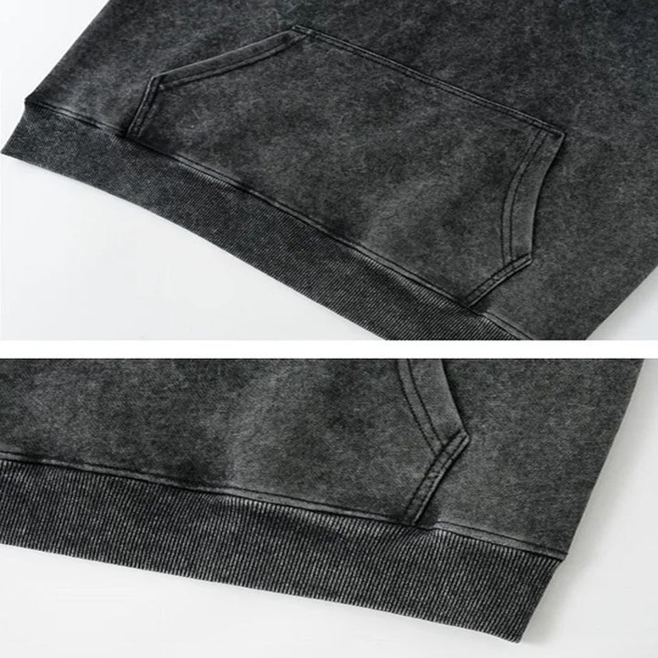 แจ็กเก็ตมีซิปสำหรับผู้ชายเสื้อฮู้ดโอเวอร์ไซส์วินเทจซักกรดสำหรับฤดูใบไม้ร่วง