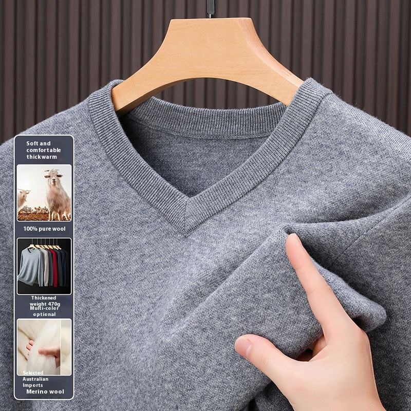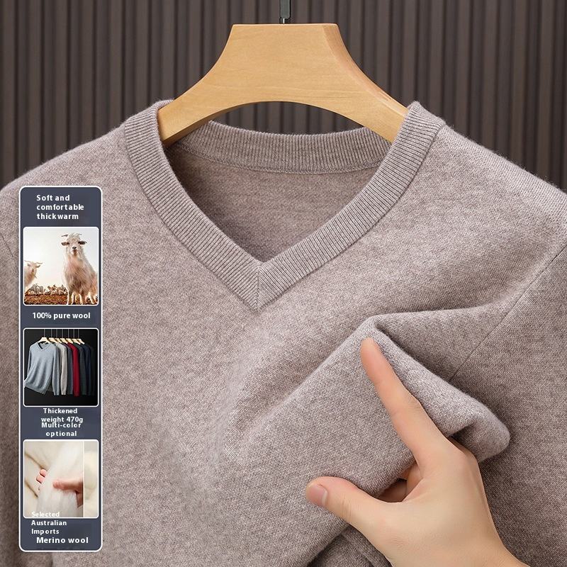 เสื้อสเวตเตอร์แขนยาวคอวีสำหรับผู้ชายเสื้อสเวตเตอร์ถักแบบสวมหัวสำหรับฤดูหนาว