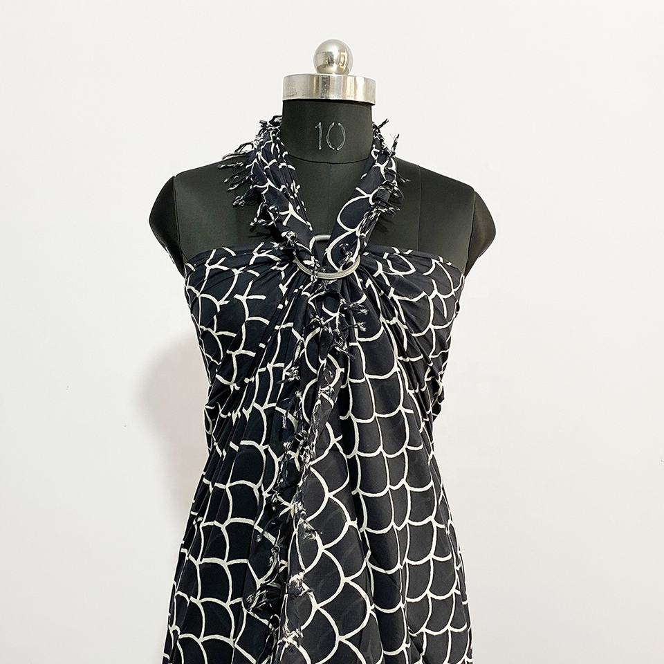 ชุดเดรสชายหาดผ้าโสร่งสำหรับผู้หญิงชุดเดรสยาวพิมพ์ลายนางเงือกแฟชั่นใหม่