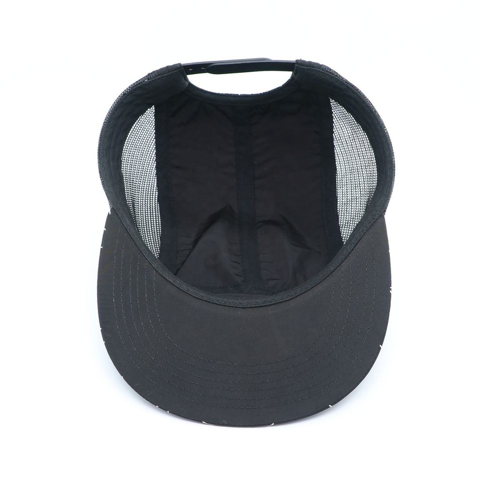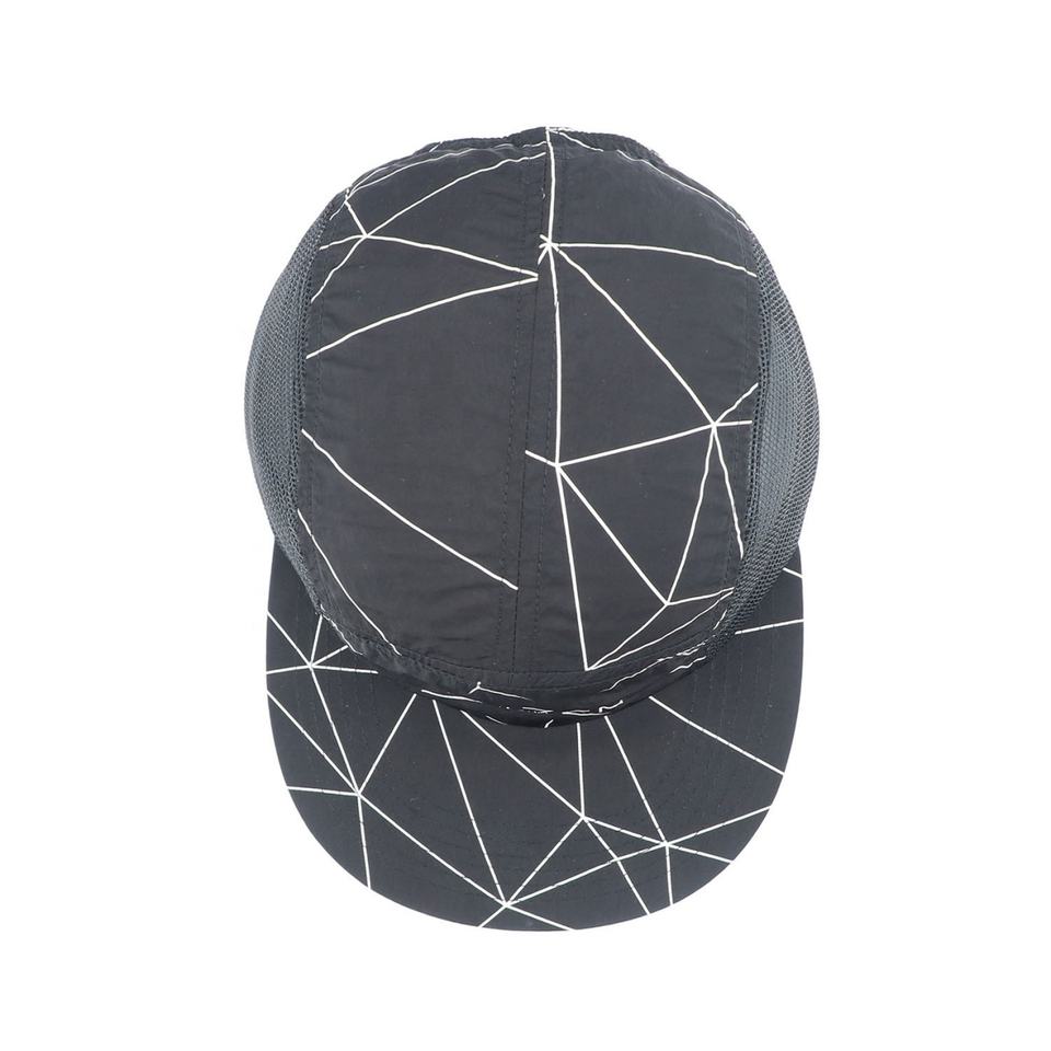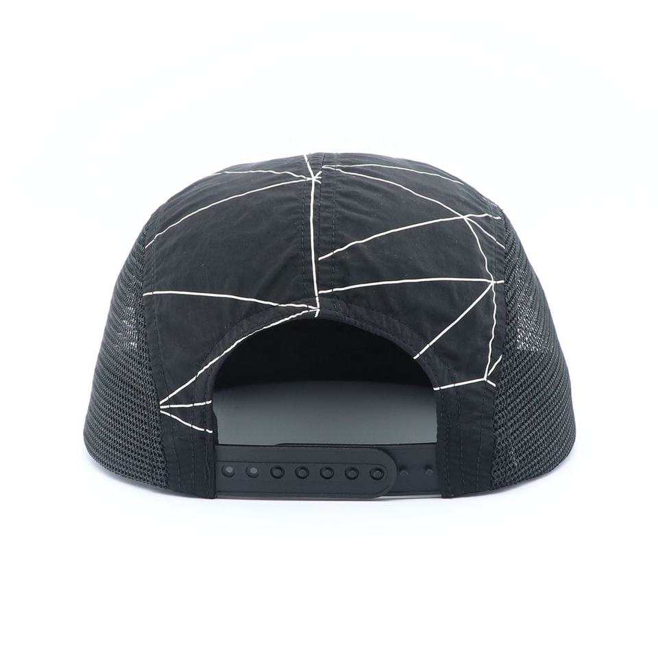 หมวกแก๊ปตาข่ายระบายอากาศแบบสแนปแบ็คกันน้ำสำหรับวิ่ง พิมพ์โลโก้ตามสั่ง หมวกเบสบอล 5 แผง หมวกไนลอนทรงทรัคเกอร์สำหรับเล่นกีฬา