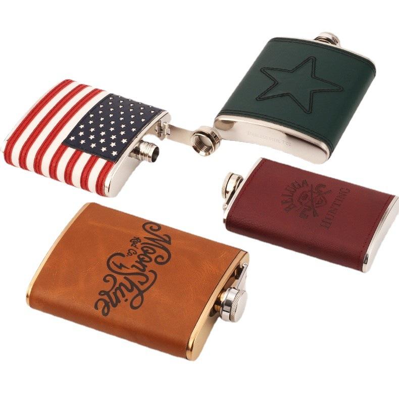 กระติกน้ำสแตนเลสสตีล6ออนซ์สำหรับเครื่องดื่มแอลกอฮอล์เหล้าวิสกี้กลางแจ้งทำจากโลหะออกแบบได้ตามต้องการ
