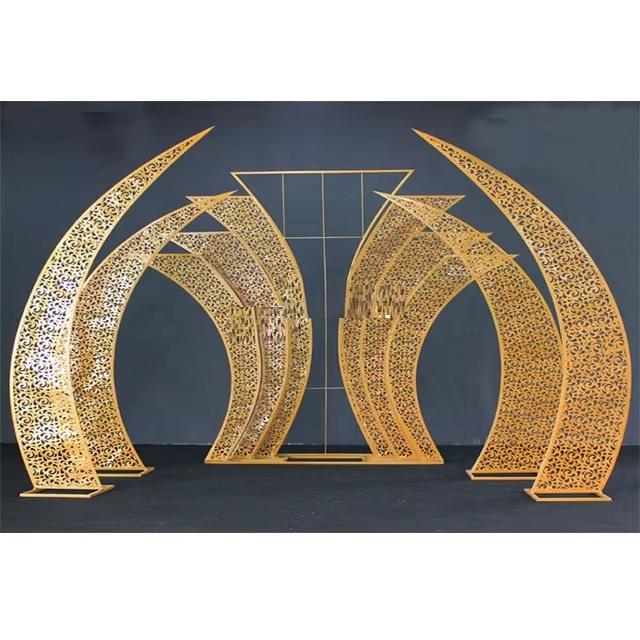 ฉากโลหะติดด้านหลังเวทีแต่งงานอุปกรณ์ประกอบฉากโลหะติดผนังด้านหลังเป็นโลหะสีทองสำหรับงานแต่งงาน