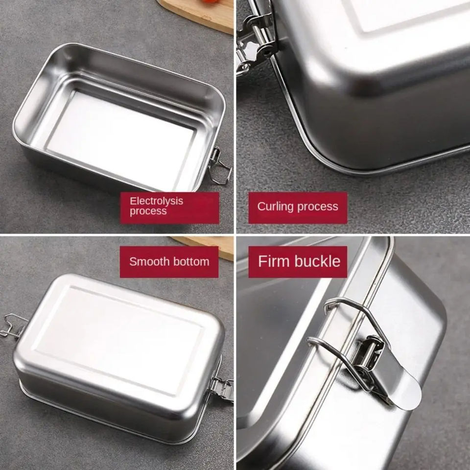 กล่องข้าวโลหะขายส่ง สแตนเลส 304 พร้อมตัวล็อค สำหรับนักเรียนและพนักงานออฟฟิศ