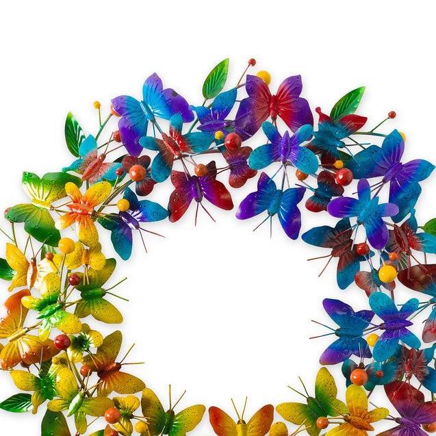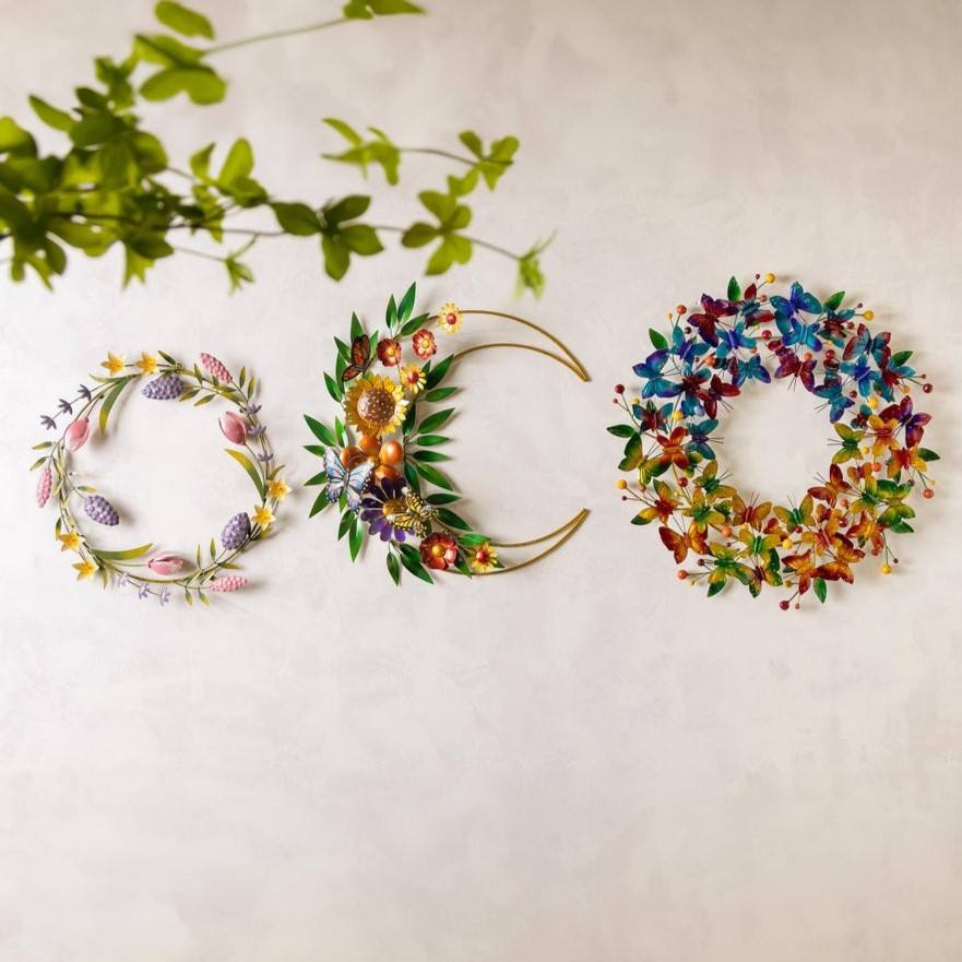 พวงหรีดดอกไม้รูปผีเสื้อโลหะขายส่ง ของตกแต่งผนังสวนกลางแจ้ง เหล็กดัดรูปพระจันทร์เสี้ยว ดอกทานตะวัน ของประดับแขวนสำหรับใช้งานกลางแจ้ง