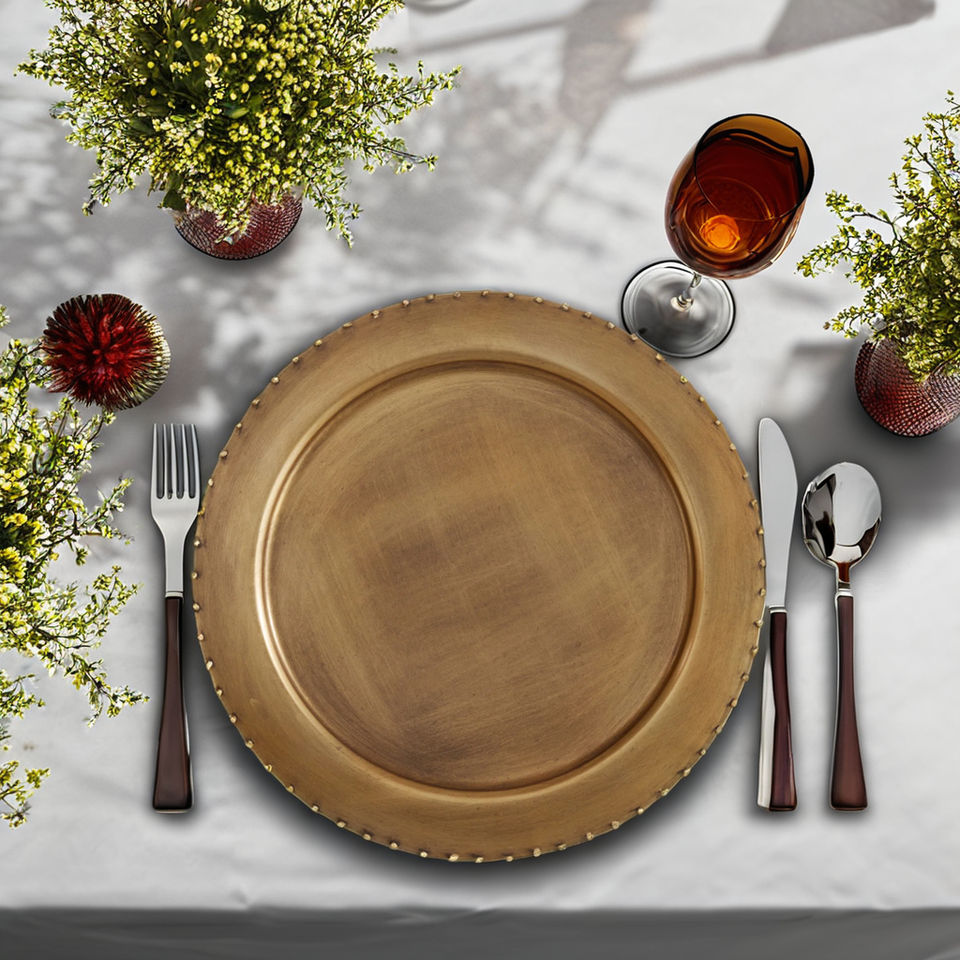 แผ่นที่ชาร์จเหล็กชุบสังกะสีแบบดั้งเดิมสีโรสโกลด์ราคาต่ำของตกแต่งงานแต่งงานสำหรับใช้ในโรงแรมและบ้าน