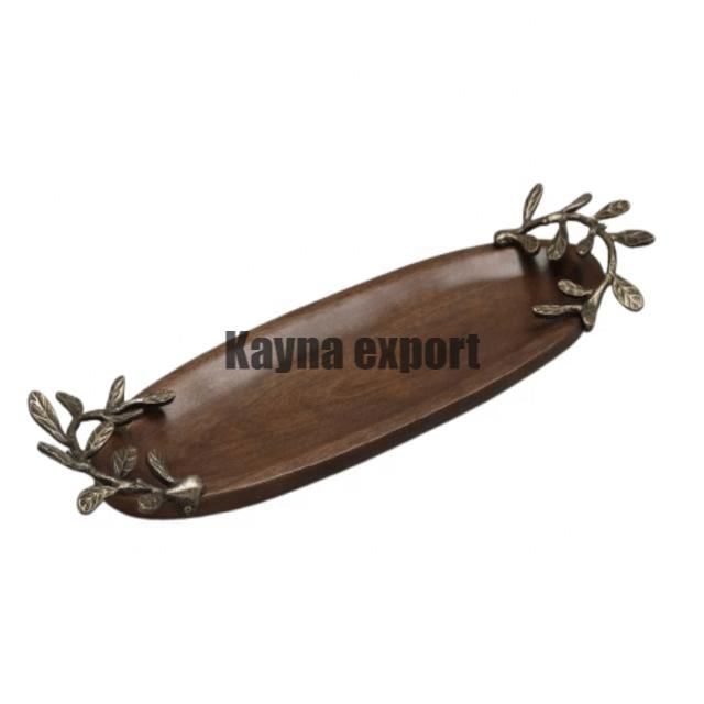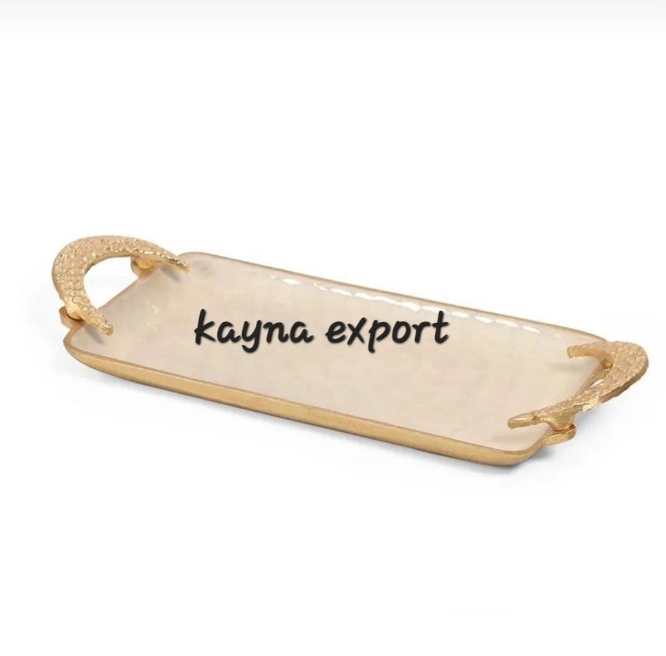 ถาดเสิร์ฟอาหารโลหะพร้อมด้ามจับสีทองถาดเสิร์ฟอาหารสำหรับร้านอาหารและโรงแรม