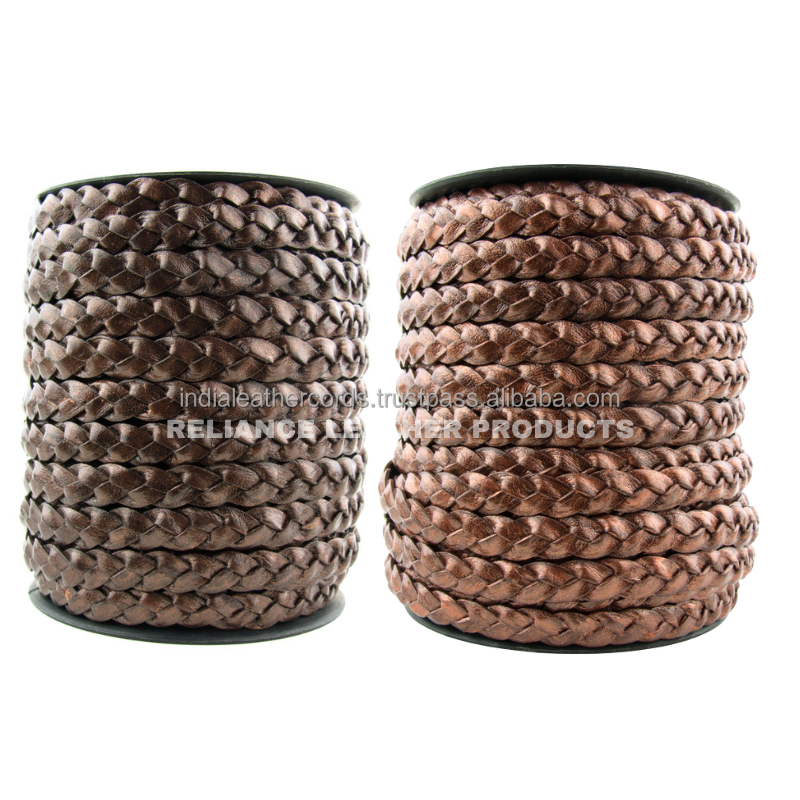 Metallic Flat Braided 3 Ply Leather Cordหมายเลขรุ่น