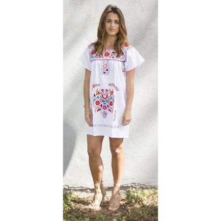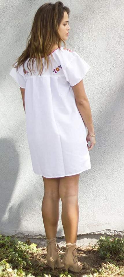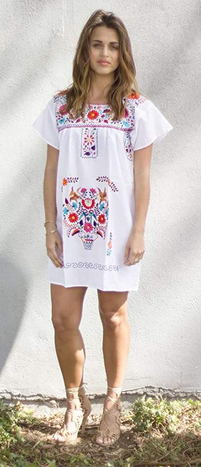 มินิเดรสลำลองสไตล์เม็กซิกันสำหรับฤดูร้อนชุดเดรสคอปักลายเป็นมิตรต่อสิ่งแวดล้อมผ้าปักยาวถึงเข่าซักได้แบบตะวันตก