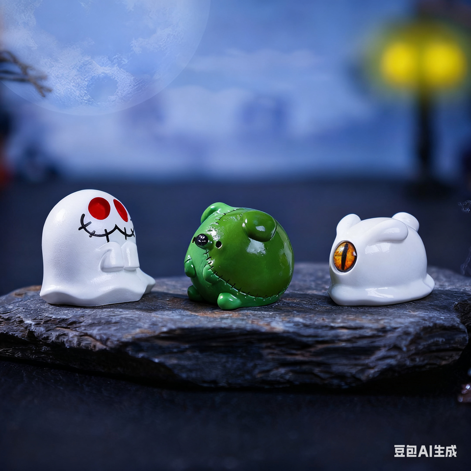 ภูมิทัศน์ขนาดเล็กแบบ DIY ของตกแต่งฮาโลวีนรูปปั้นผีฟักทองรูปสัตว์เรืองแสงโครงกระดูกขนาดเล็ก
