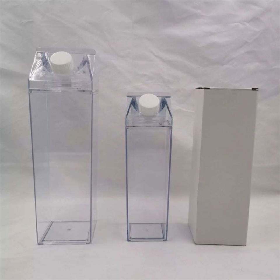 ขวดน้ำพลาสติกใสทรงกล่องนมแบบพกพา ป้องกันการรั่วซึม ใช้ซ้ำได้ ปลอดภัยสำหรับเครื่องล้างจาน เหมาะสำหรับงานปาร์ตี้ ขายส่ง