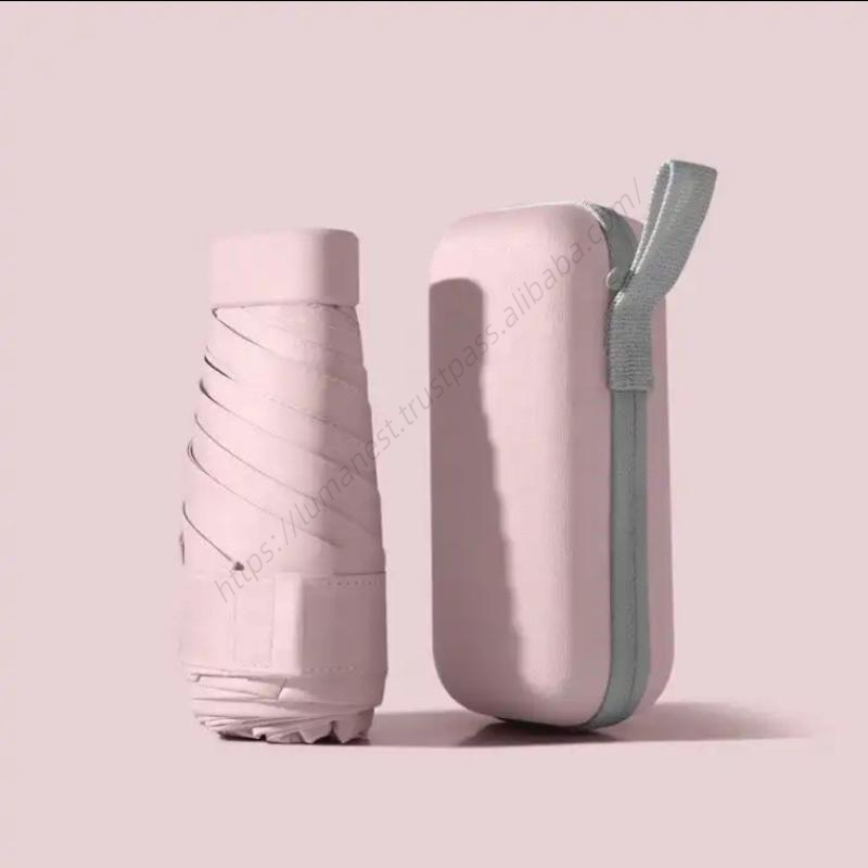 ร่มพับขนาดเล็ก 5 ตอน แบบแคปซูล ป้องกัน UV พร้อมซิปและกล่องแข็ง สำหรับขายส่ง ของขวัญทางธุรกิจ