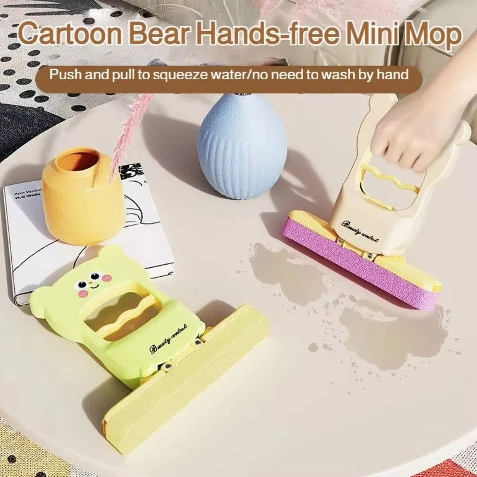 ไม้ถูพื้นแบบพับได้ขนาดเล็กสำหรับโต๊ะทำงาน ใช้ได้ทั้งแบบเปียกและแบบแห้ง ลายการ์ตูนหมีน่ารัก สำหรับเช็ดโต๊ะ