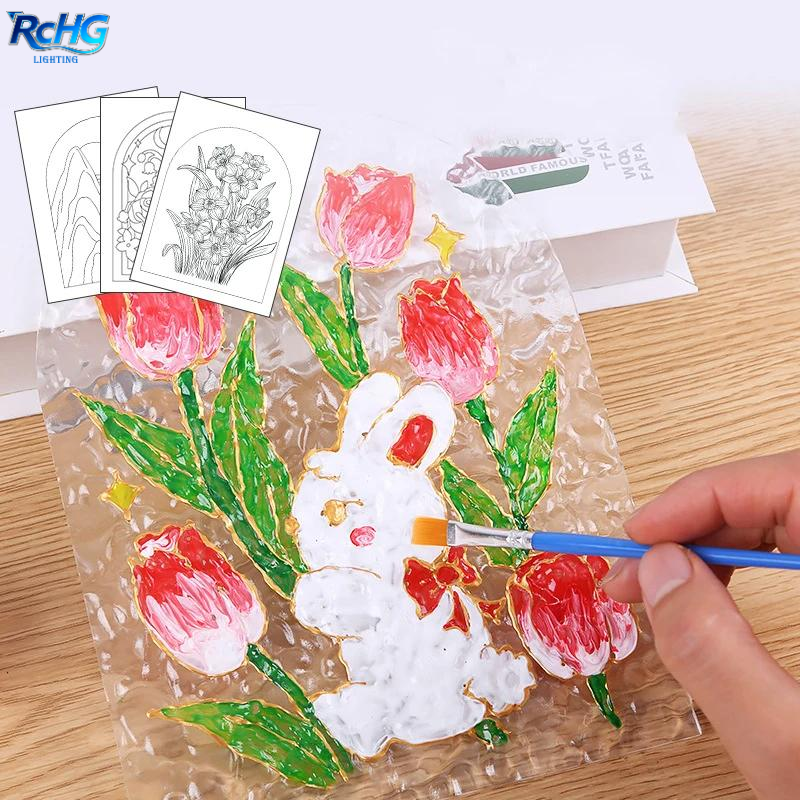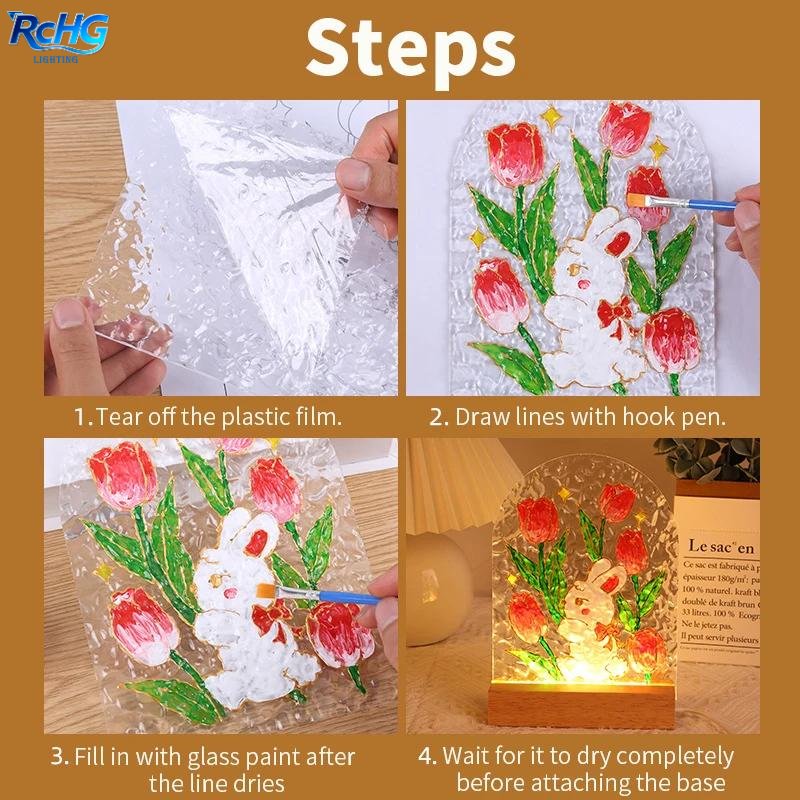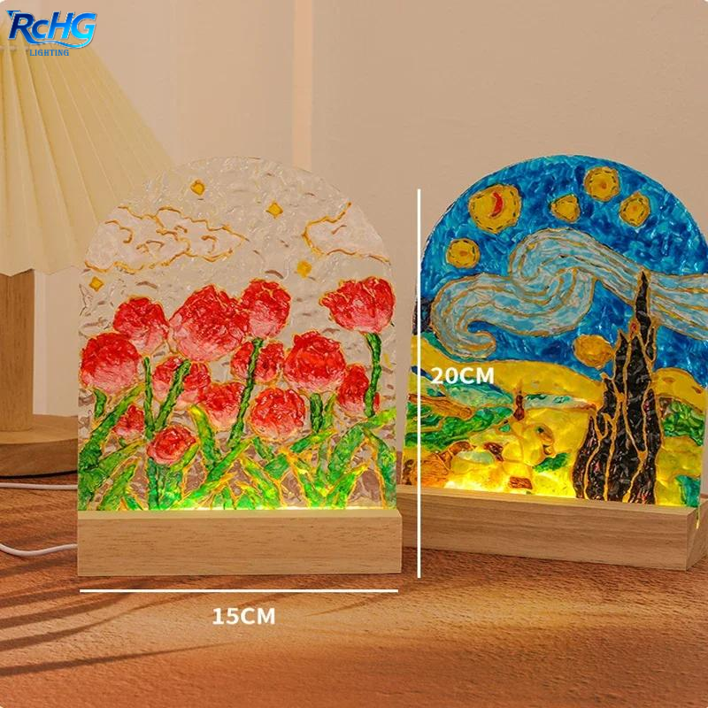 ไฟกลางคืนอะคริลิค DIY รูปดอกทิวลิปขนาดเล็ก งานแฮนด์เมด พร้อมฐานไม้ เสียบปลั๊กได้ ภาพวาดระลอกน้ำบนกระจก สำหรับเด็ก วันเกิด วันแม่
