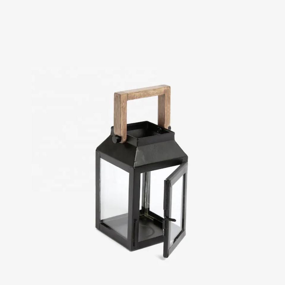 ตะเกียงโลหะสีดำสไตล์โมเดิร์นเรียบง่ายพร้อมหูจับไม้สำหรับตกแต่งบ้านบนโต๊ะอาหาร ขายส่ง