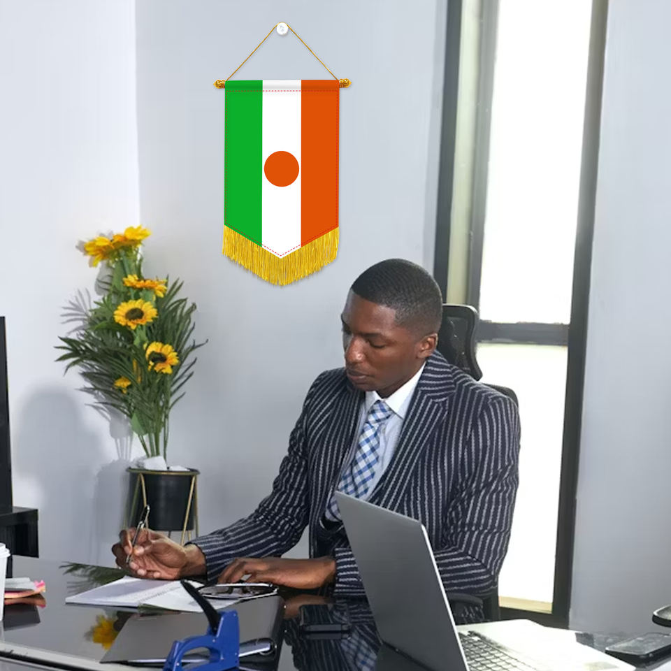 ธงสามเหลี่ยมขนาดเล็กสำหรับรถยนต์ ขายส่ง ธงไนเจอร์ ของตกแต่งผนัง ของประดับขนาดเล็ก แขวนได้ พิมพ์ลายดิจิทัล วัสดุผ้าซาติน