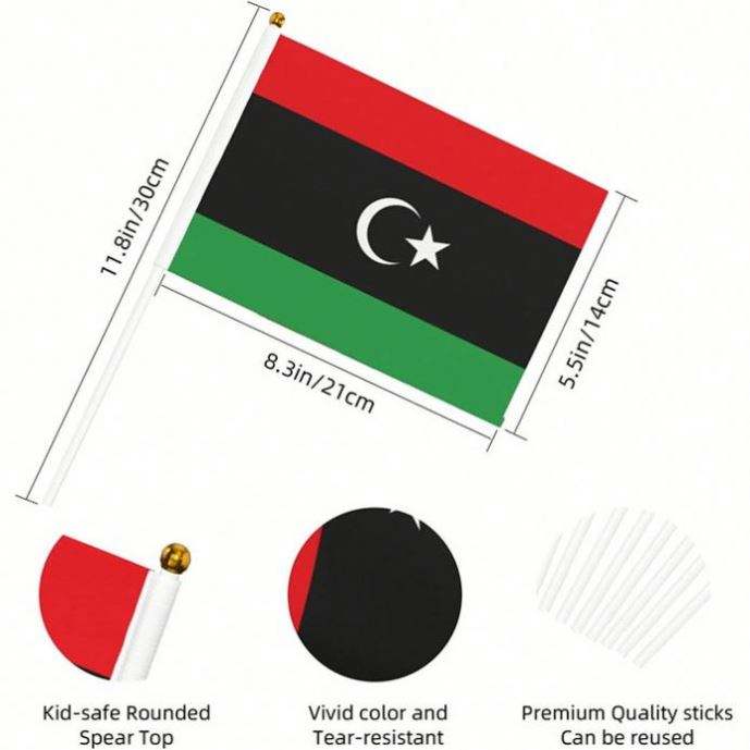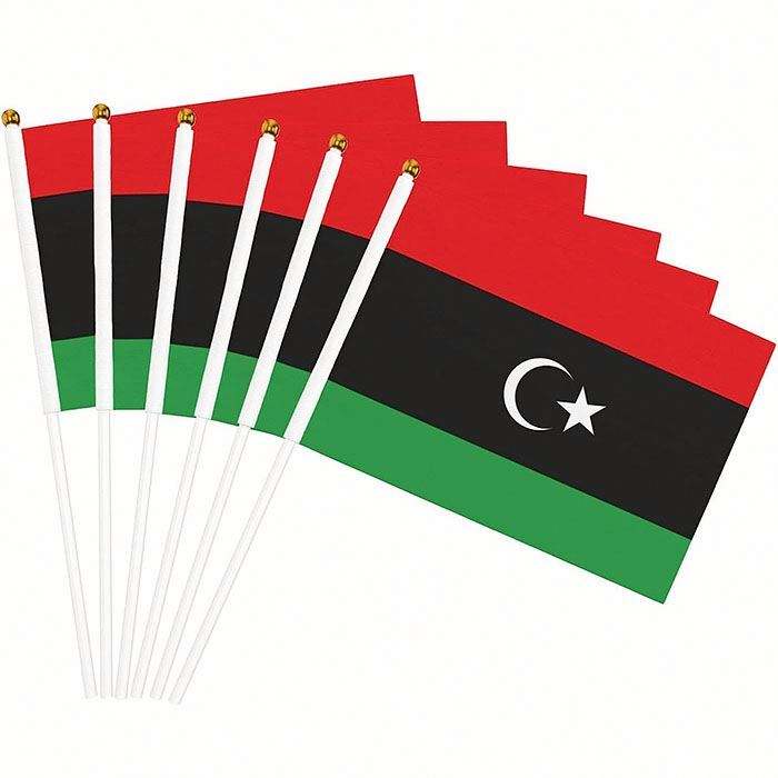ธงลิเบียขนาดเล็ก 5.5x8.2 นิ้ว ทำจากโพลีเอสเตอร์ สำหรับตกแต่ง พร้อมเสา PVC ขายส่ง