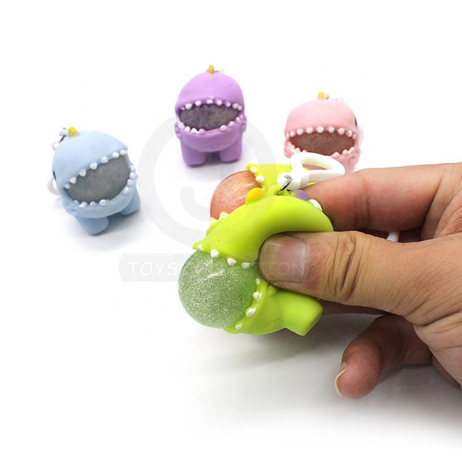 พวงกุญแจยางแบบบีบ TPR ขนาดมินิของเล่นรูปฉลามมีกลิตเตอร์ลูกบอลน้ำคลายเครียด