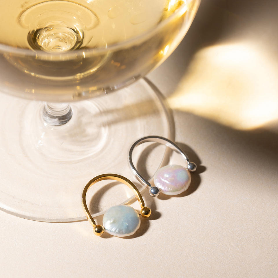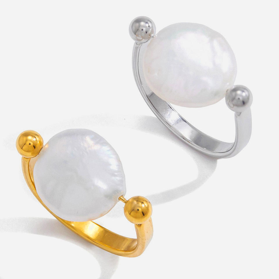 แหวนมุกสแตนเลสปรับขนาดได้ ชุบทอง 18K ขายส่ง