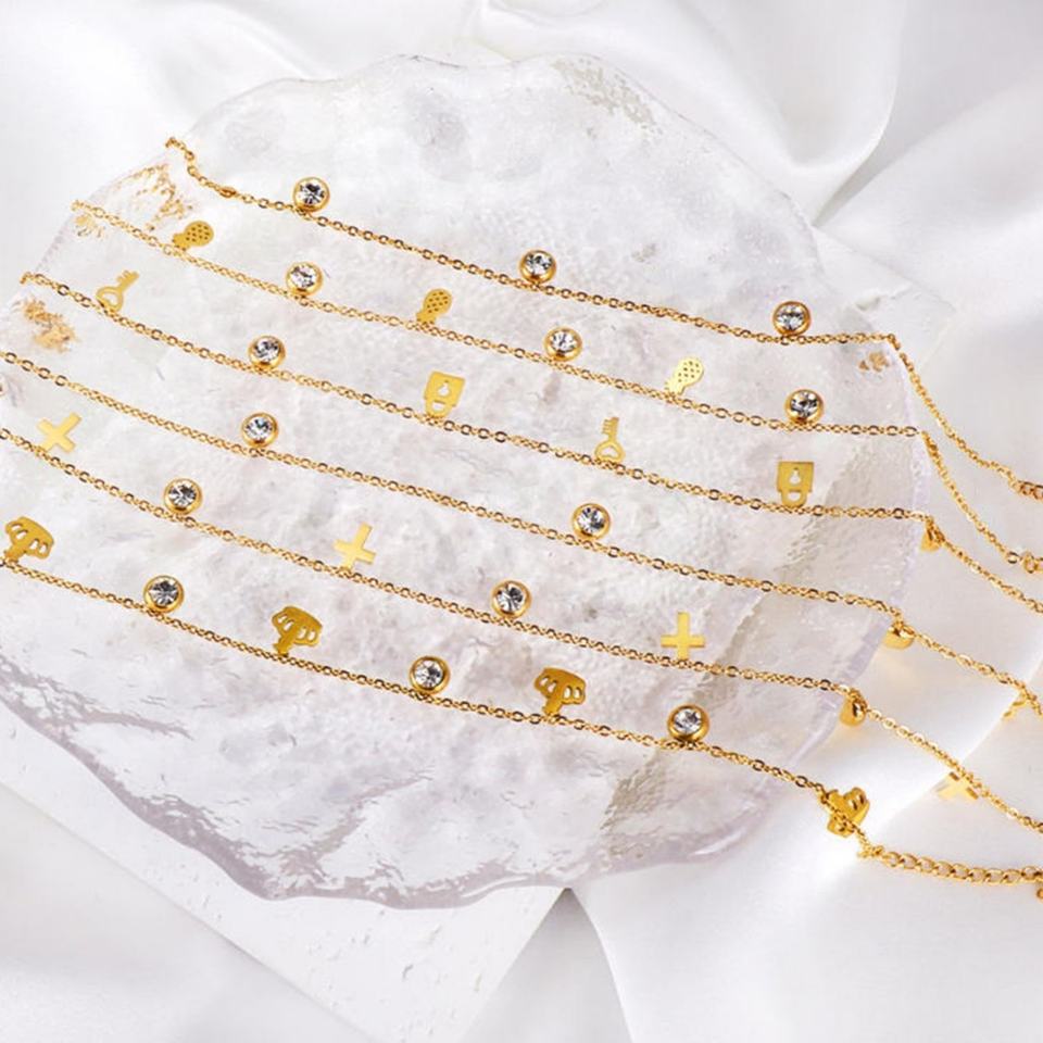 กำไลข้อมือสแตนเลสสตีลผู้หญิงสไตล์มินิมอลขายส่ง ชุบทอง 18K ประดับเพชรซิร์โคเนีย ดีไซน์เก๋ สามารถสวมซ้อนกันได้ เป็นชุด