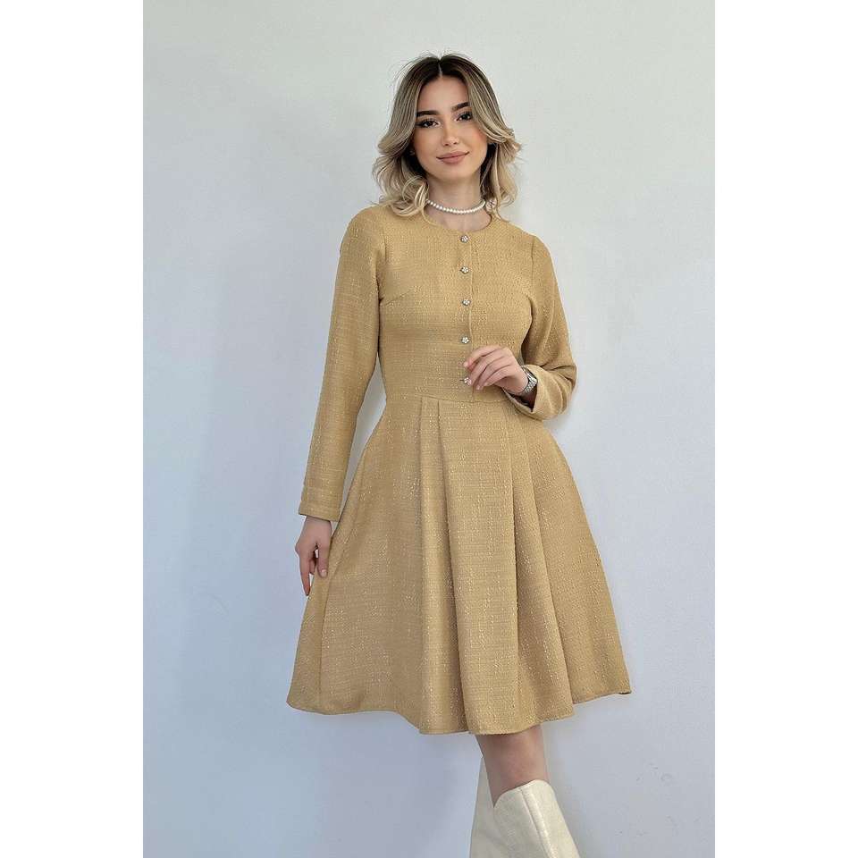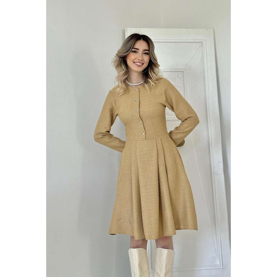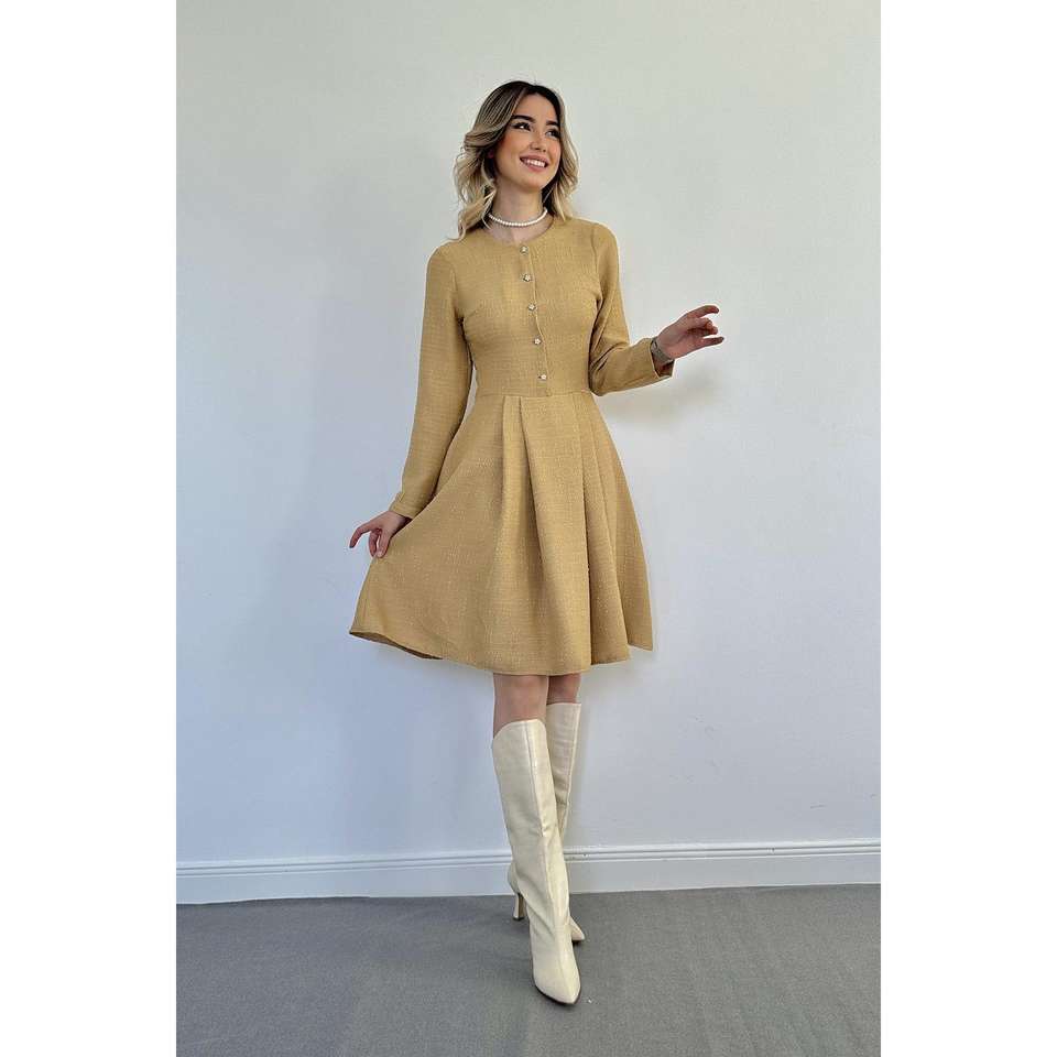 เดรสสั้นคลาสสิกขนมิงค์ขายส่ง ทรงเอวธรรมชาติ ซักได้