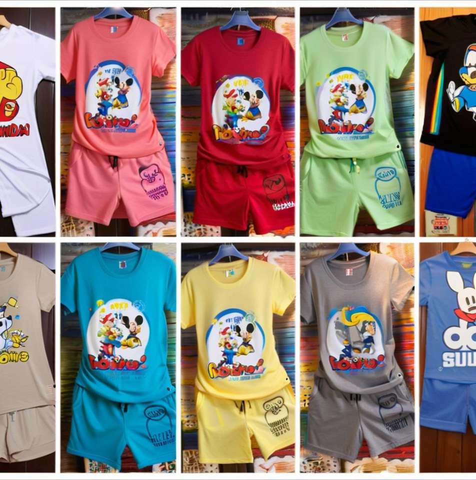 ชุดเสื้อผ้าเด็กสไตล์ลำลองลายการ์ตูนฤดูร้อนแบบคละลายขายส่ง ผ้าฝ้าย ไม่มีแบรนด์
