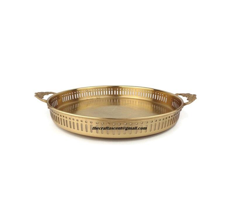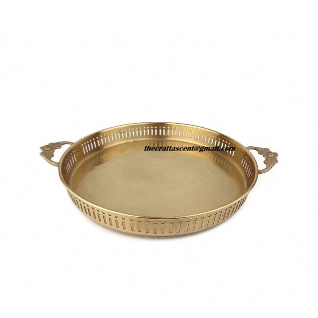 Wholesale Modern Brass Christmas Decoration Tray Metal Handicraft Home & Garden Table Top Gold Brushed Finish