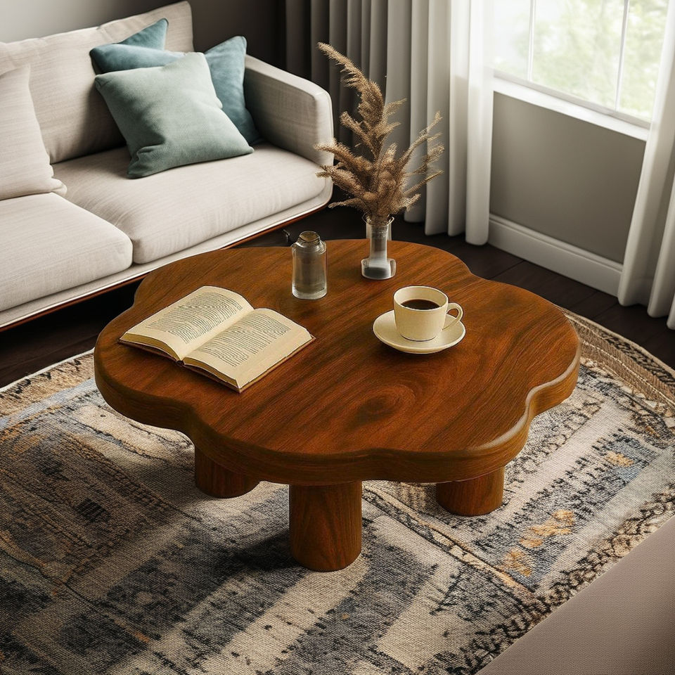 โต๊ะกาแฟแบบทันสมัยโต๊ะกลางทำจากไม้ขอบสดโต๊ะไม้ธรรมชาติทำด้วยมือโต๊ะตกแต่งบ้าน
