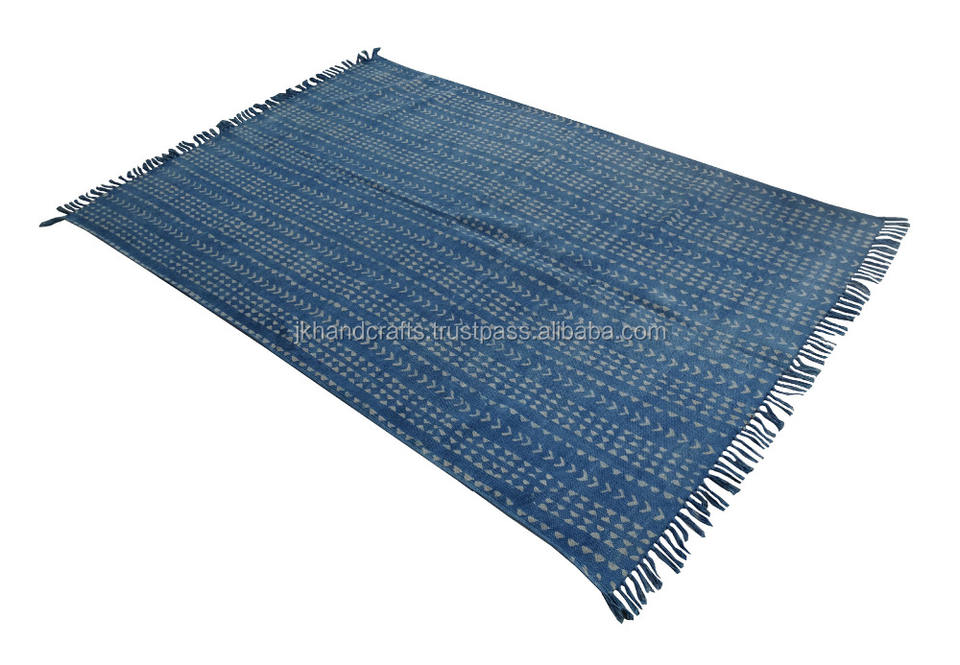 พรมปูพื้นผ้าฝ้ายพิมพ์ลายบล็อกด้วยมือมีลวดลายเรขาคณิต