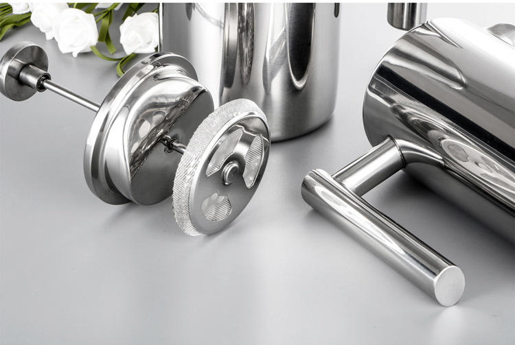 กาต้มชาแบบโมเดิร์นสั่งทำได้ พร้อมที่กรองชาแบบมือและตัวกด ทำจากสแตนเลสสองชั้น ใช้ชงกาแฟแบบเฟรนช์เพรส