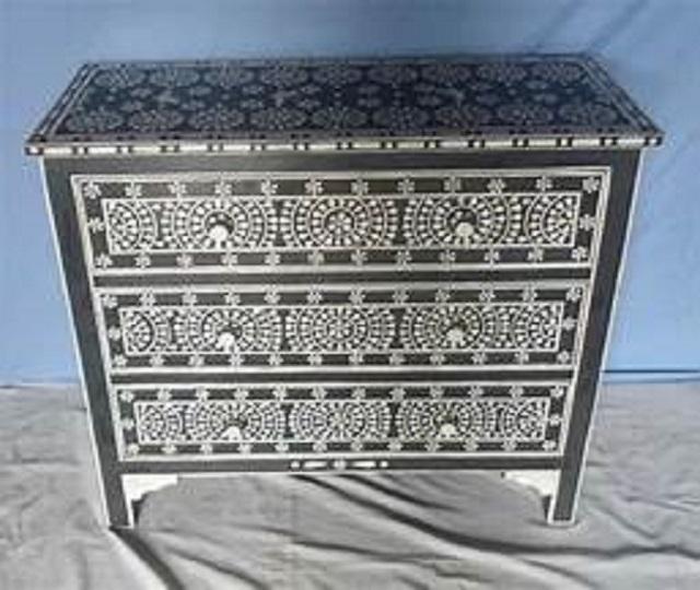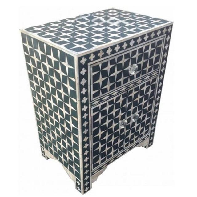 ชุดลิ้นชัก2ประตู1อันดีไซน์ทันสมัยชุดห้องนอนสีขาวสีดำฝังก้างปลาเฟอร์นิเจอร์บ้านอินเดีย