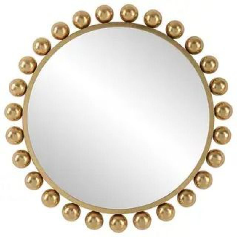 กระจกตกแต่งผนังทรงกลมลายใบไม้สีทอง ดีไซน์ทันสมัย สไตล์วินเทจ กรอบโลหะลายดอกไม้ สำหรับตกแต่งบ้าน