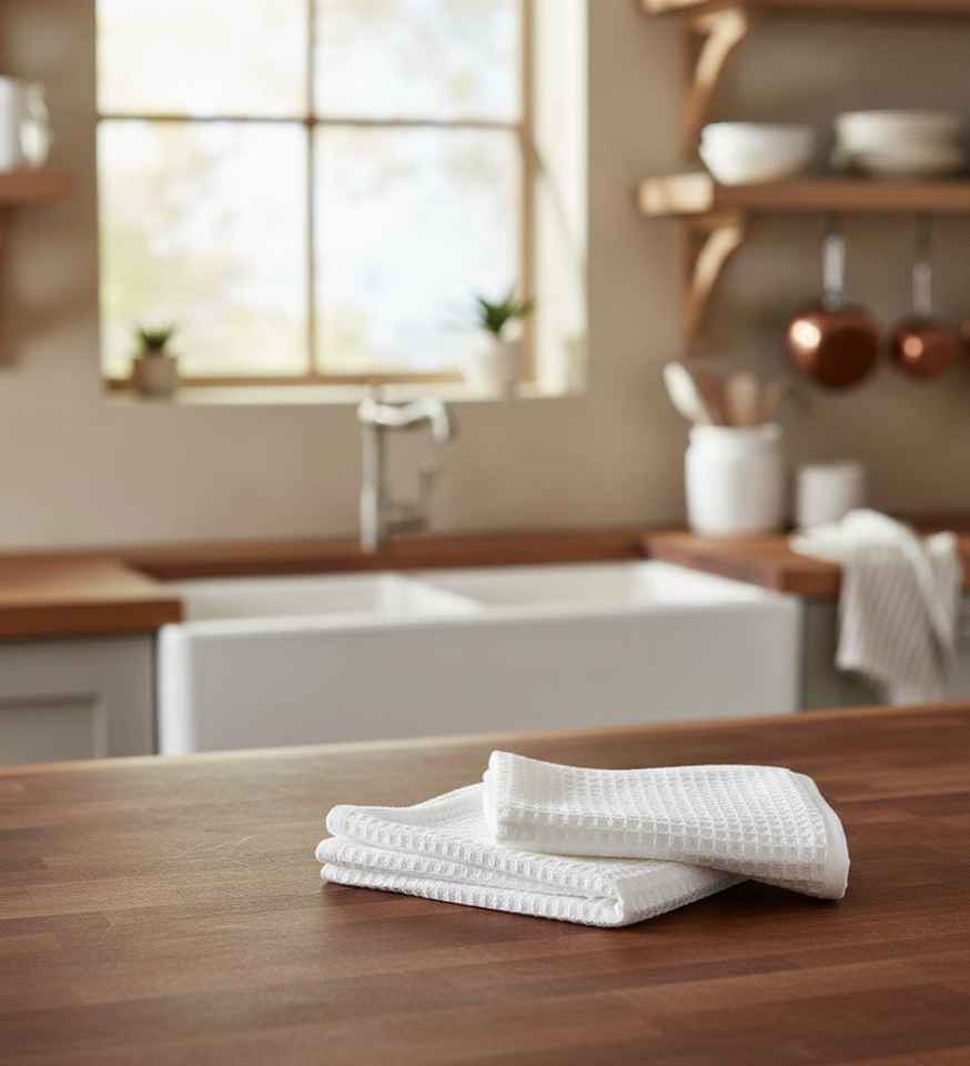 ผ้าเช็ดครัวลายวาฟเฟิลผ้าฝ้ายออร์แกนิคทันสมัยขายส่ง ขนาด 30x50 ซม. ซึมซับน้ำได้ดี แห้งเร็ว พรีเมียม รับสกรีนโลโก้ ผ้าเช็ดมือสำหรับใช้ในบ้าน
