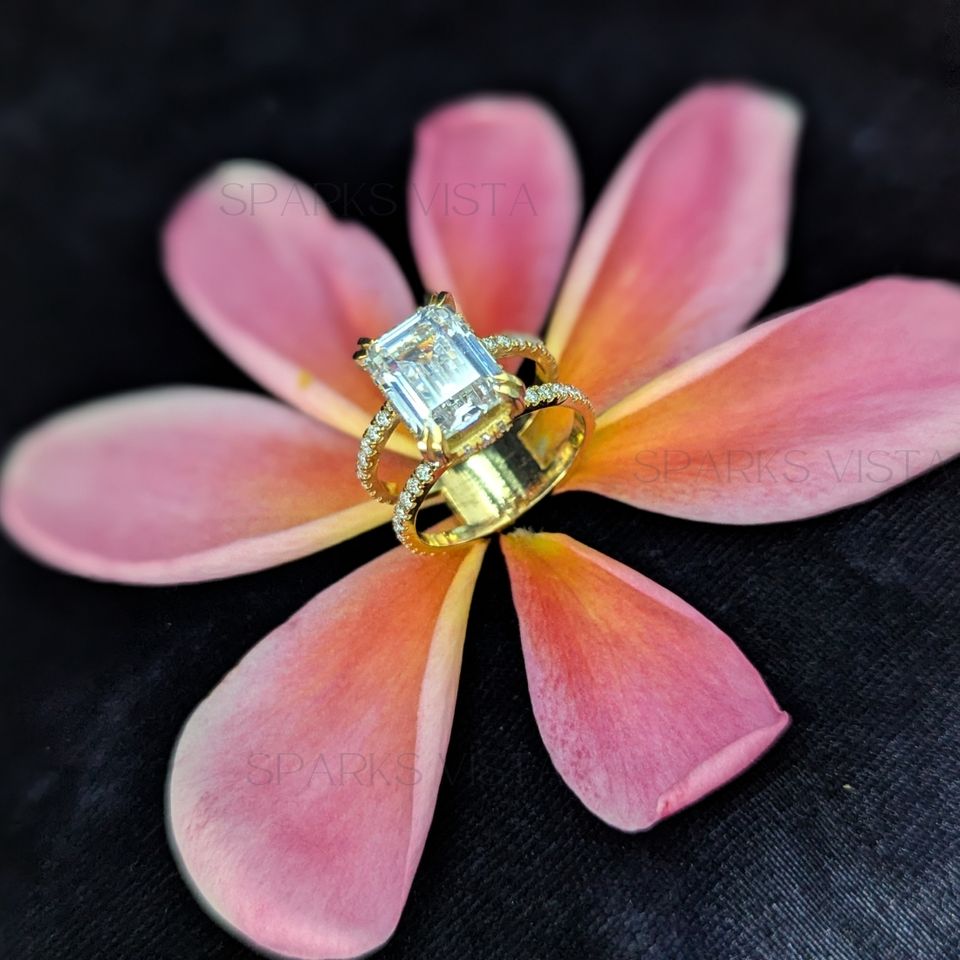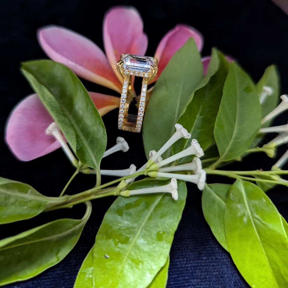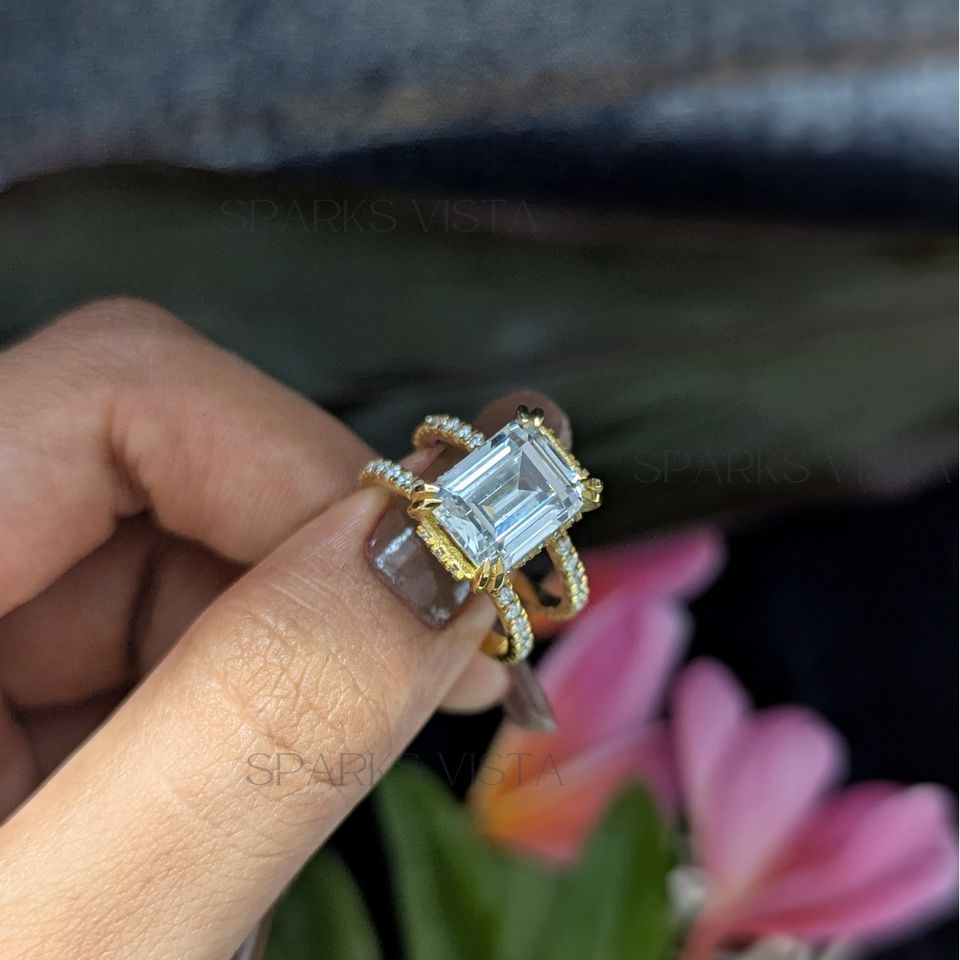 แหวนเพชรโมอิสตัดสีมรกตและทันสมัยขายส่งมีความคมชัดมากสี D ชุบทองสเตอริง925การออกแบบเครื่องประดับเจ้าสาวที่ไม่ซ้ำใคร