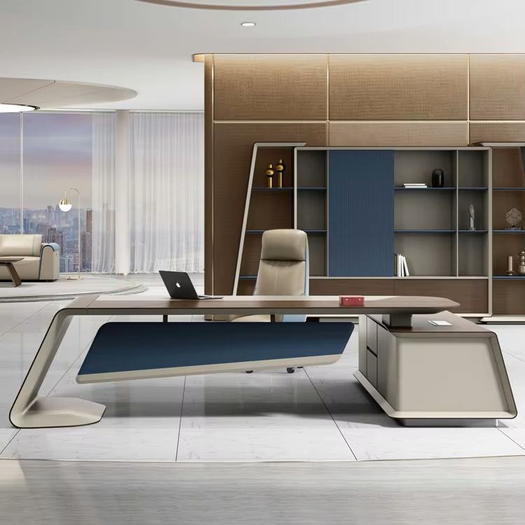 โต๊ะทำงานผู้บริหารทันสมัยแบบขายส่ง ทำจาก MDF พร้อมตู้เก็บของหรูหราสไตล์ไม้ สำหรับซีอีโอ ผู้บริหาร หรือใช้ในโฮมออฟฟิศ