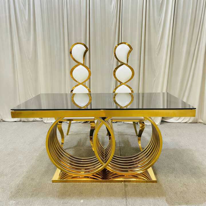 โต๊ะจัดเลี้ยงงานแต่งงานทรงกลมสแตนเลสสีทองทันสมัยสำหรับโรงแรม ร้านอาหาร ห้องนั่งเล่น งานแต่งงาน และงานเลี้ยง