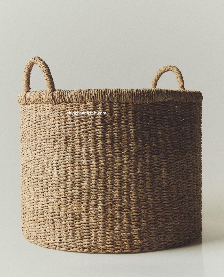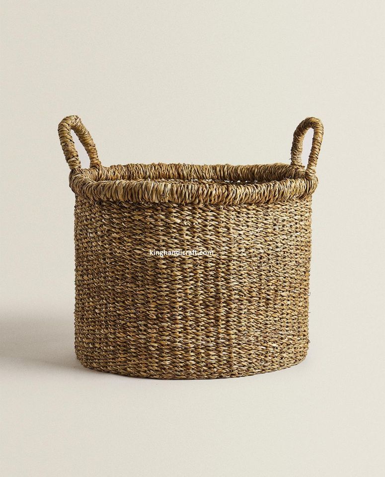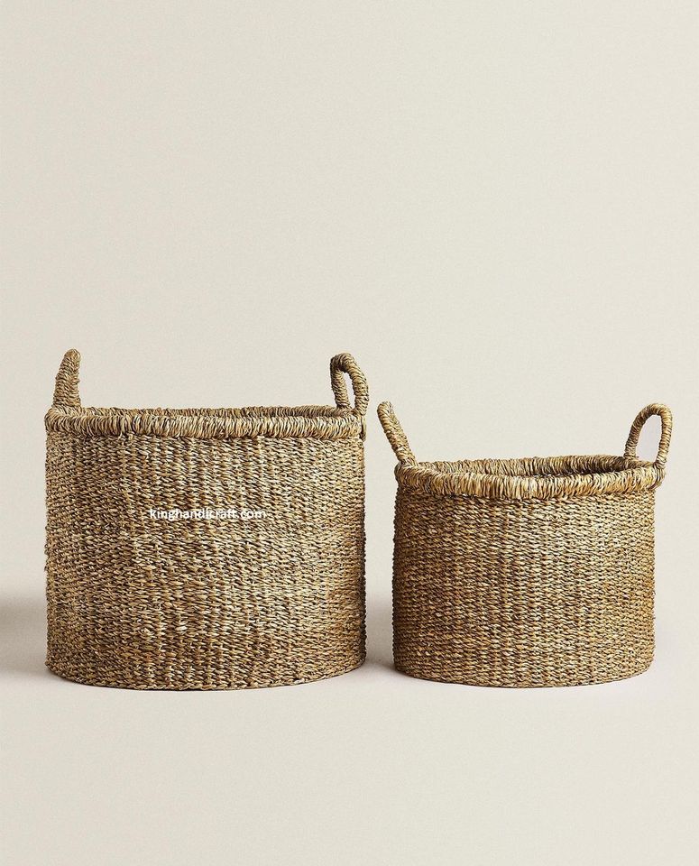 ตะกร้าเก็บของพับได้ทำมือจากหญ้าทะเลสไตล์โมเดิร์น ขายส่ง เป็นมิตรกับสิ่งแวดล้อม สำหรับตกแต่งบ้าน เก็บเสื้อผ้า ของเล่น