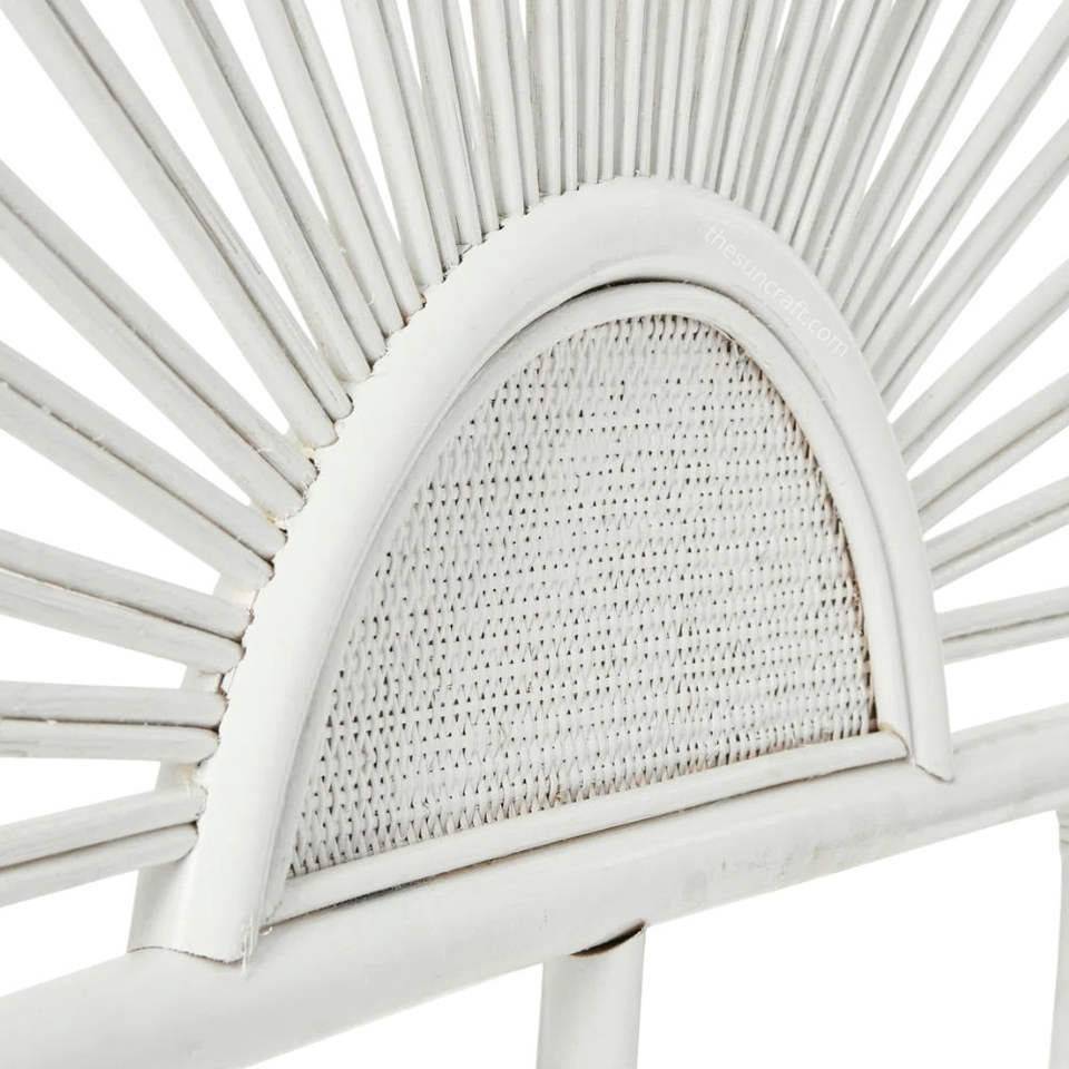 หัวเตียงหวายสีขาวรูปดอกไม้ทรงโค้งสำหรับตกแต่งผนังห้องนอน ผลิตในเวียดนาม ขายส่ง