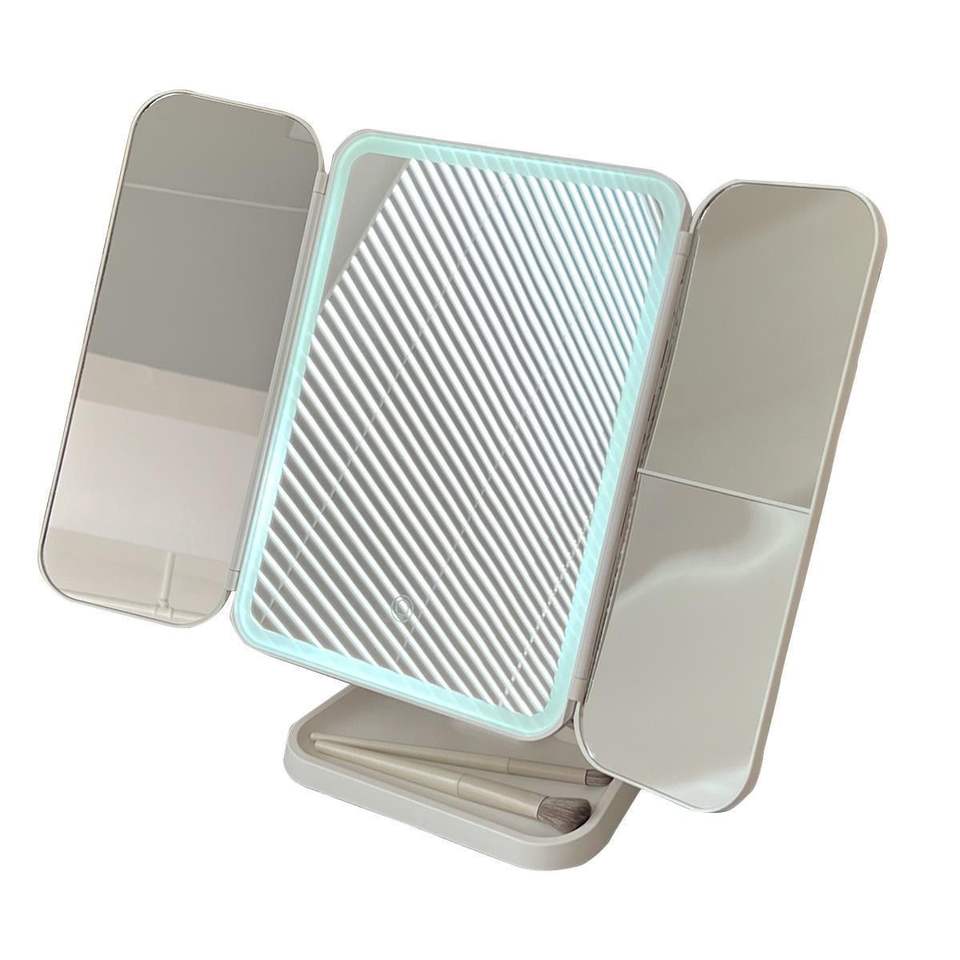 กระจกแต่งหน้า LED โมเดิร์นแบบขายส่ง พร้อมไฟ สามด้าน พับได้ ขยายภาพได้ กรอบ ABS สำหรับงานแต่งงาน วันเกิด ใช้ในห้องนอน