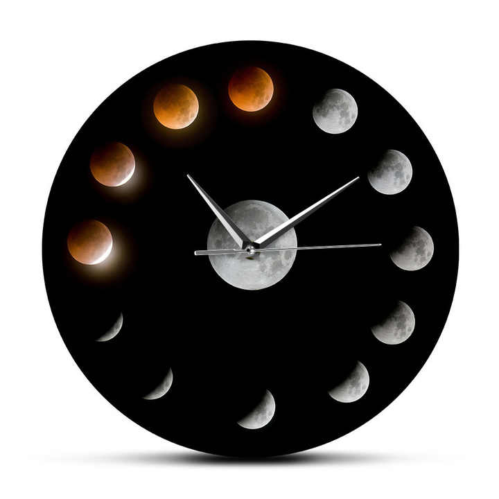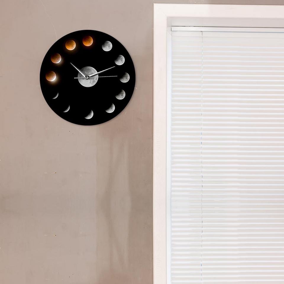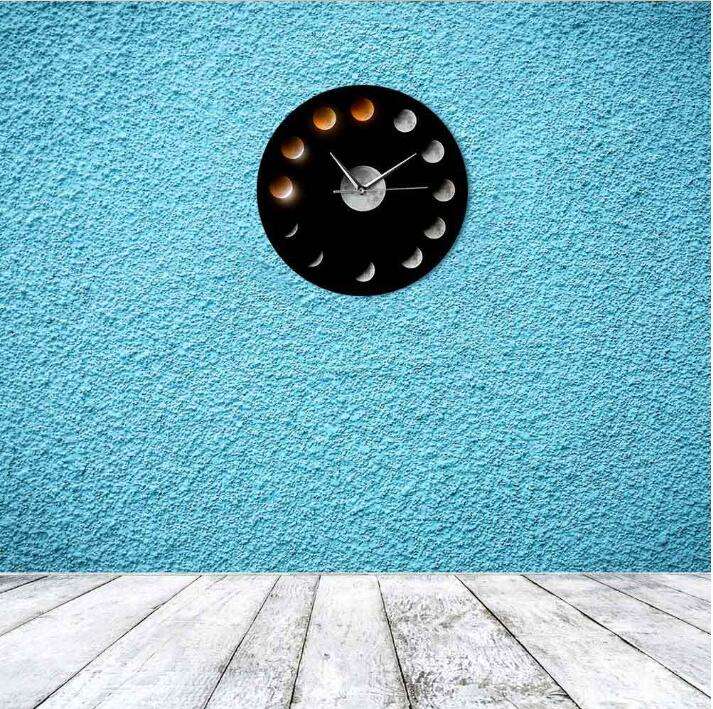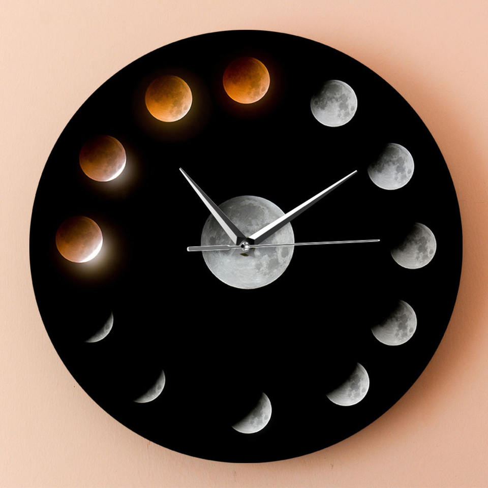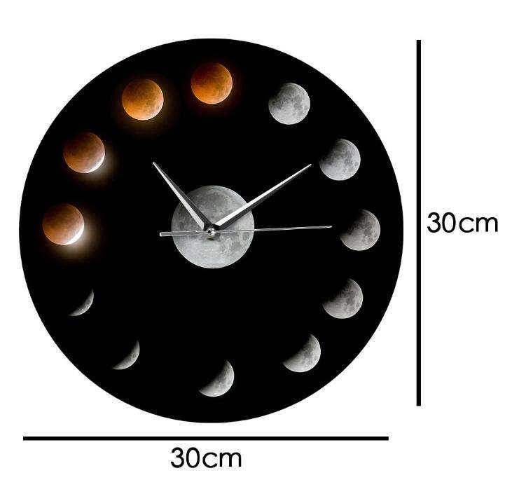 นาฬิกาแขวนผนังรูปดวงจันทร์ระบบควอตซ์แบบทันสมัยปรับแต่งได้กลไกดาราศาสตร์สำหรับการจัดวางในห้องนั่งเล่น