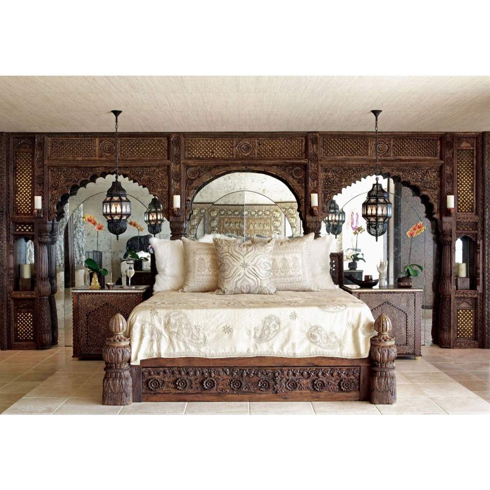เตียง rajasthani คุณภาพสูงเฟอร์นิเจอร์ไม้เนื้อแข็งเตียงคิงไซส์ห้องนอนไม้แกะสลักบ้านเตียงนั่งเล่น