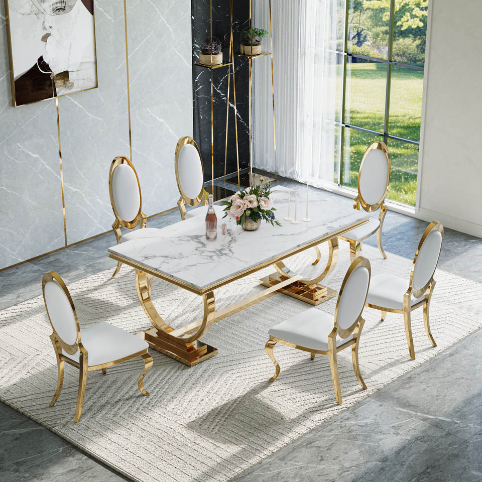 โต๊ะอาหารโลหะสีขาวหรูหราทันสมัยสำหรับขายส่ง - เฟอร์นิเจอร์บ้านที่เป็นมิตรกับสิ่งแวดล้อมและทนทานสำหรับใช้ในโรงแรมและอพาร์ตเมนต์