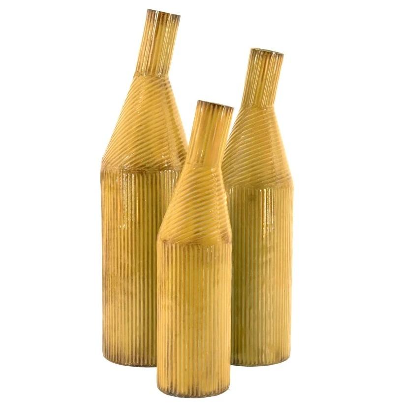 แจกันโลหะทันสมัยสำหรับดอกไม้ขายส่ง | ชุดแจกันตกแต่งลายริ้ว | แจกันตกแต่งโต๊ะสีเหลืองสำหรับงานอีเว้นท์