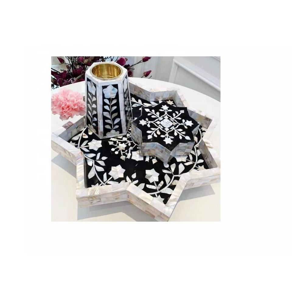 ชุดถาดใส่ขนมแม่มุกแบบทันสมัยพร้อมกล่องใส่ไฟชุดเตาบาเคอร์ชุดเตาอบเบอร์งานฝีมืออินเดีย