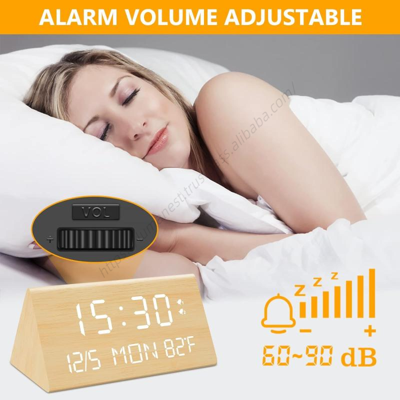 นาฬิกาปลุกดิจิตอล LED แบบตั้งโต๊ะรูปสามเหลี่ยมอเนกประสงค์ทันสมัยพร้อมจอแสดงอุณหภูมิและความชื้น ขายส่ง
