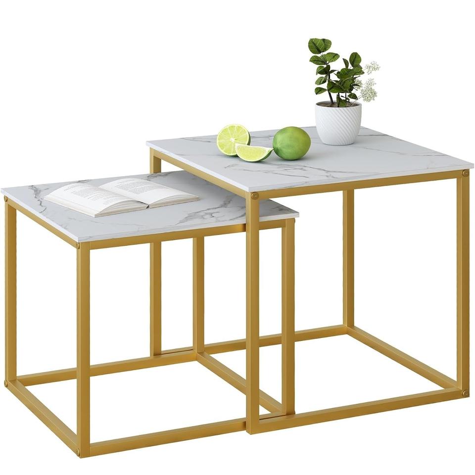 โต๊ะทำรังที่ทันสมัยพร้อมหินอ่อนสี่เหลี่ยมกรอบโลหะตกแต่งบ้านสุดหรูกรอบโลหะเคลือบทองสไตล์ร่วมสมัยเคลื่อนย้ายได้