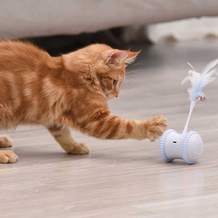 ของเล่นแมวขนนกอัตโนมัติอัจฉริยะแบบโต้ตอบชาร์จได้ทำจากพลาสติกที่ทันสมัย