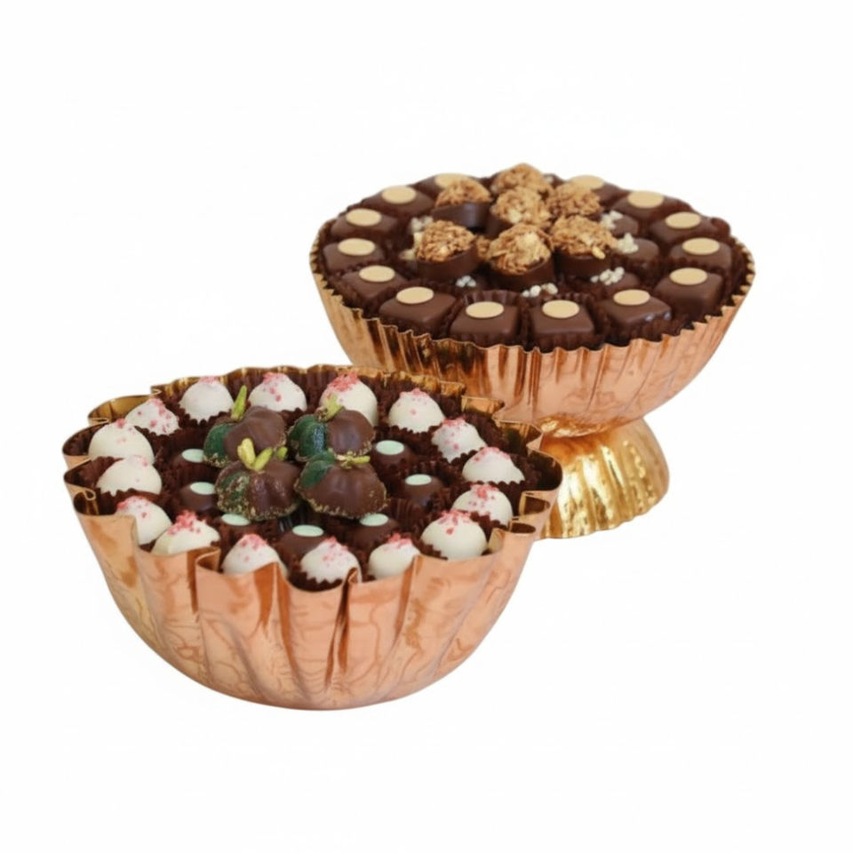 ชามใส่ช็อกโกแลตและอินทผลัมสแตนเลสสตีลสีโรสโกลด์ทันสมัยพร้อมฐานวางแบบพิเศษสำหรับโรงแรมและร้านอาหารในราคาถูกที่สุด
