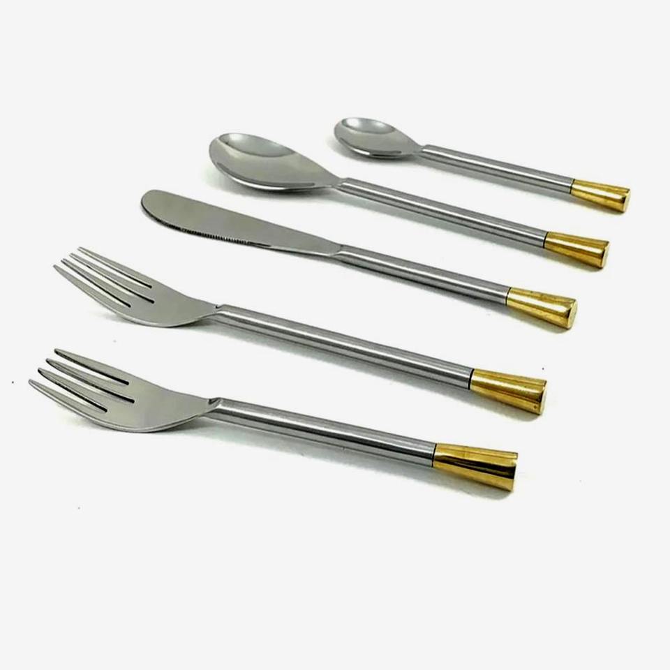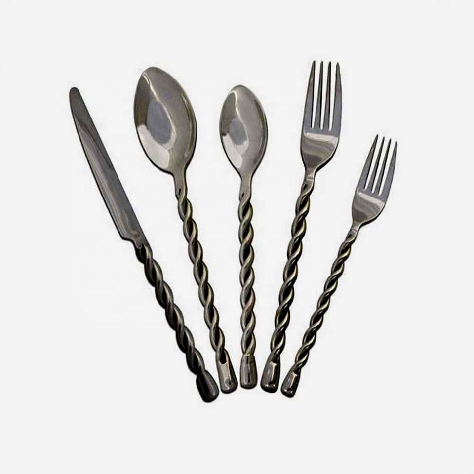 ชุดช้อนส้อมสเตนเลสสตีลที่ทันสมัยพร้อมด้ามยาวสีเงินหรูหราดีไซน์วินเทจส้อมเสิร์ฟสลัดสไตล์เกาหลี
